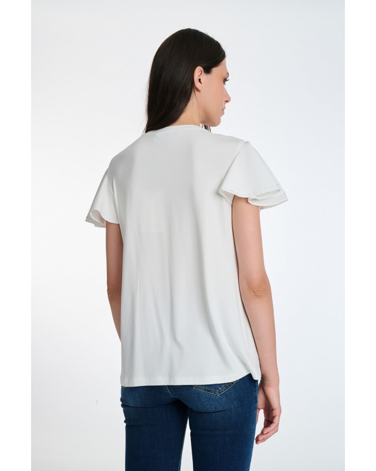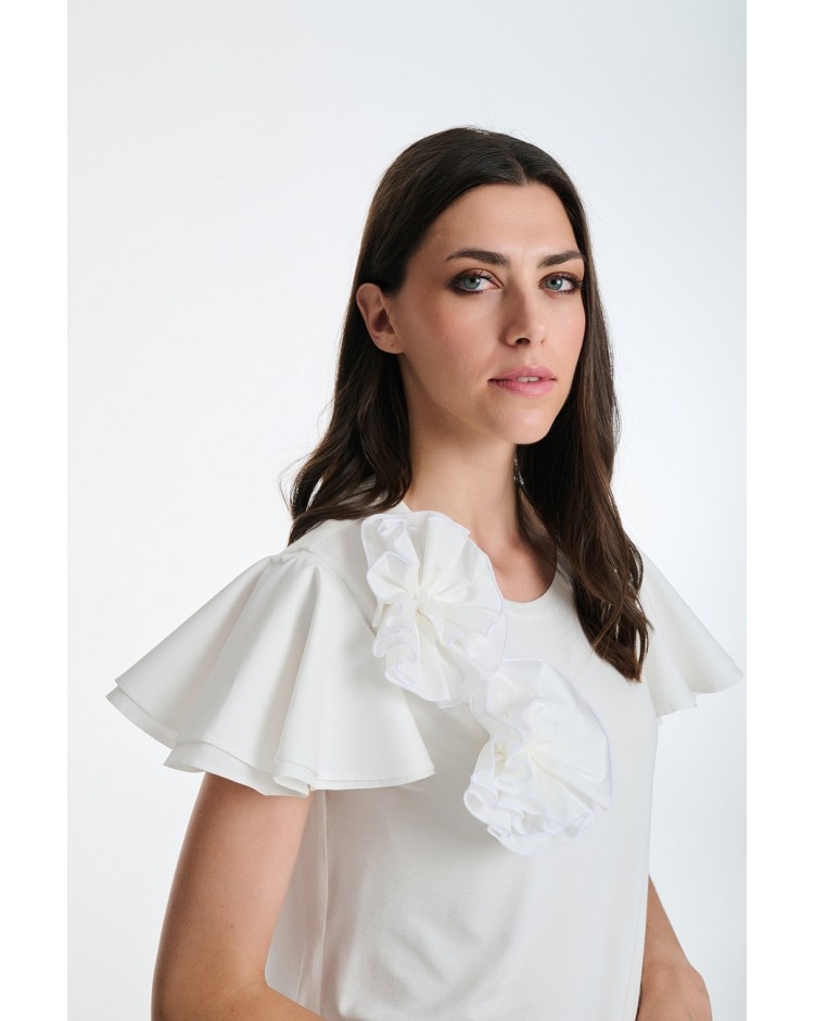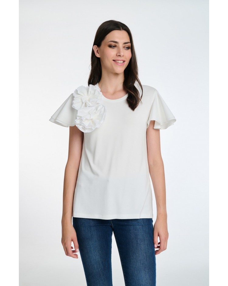 Μπλούζα κοντομάνικη με λουλούδια 95%VIS-5%EL + 79%COT-18%PA-3%SP 25-149-00