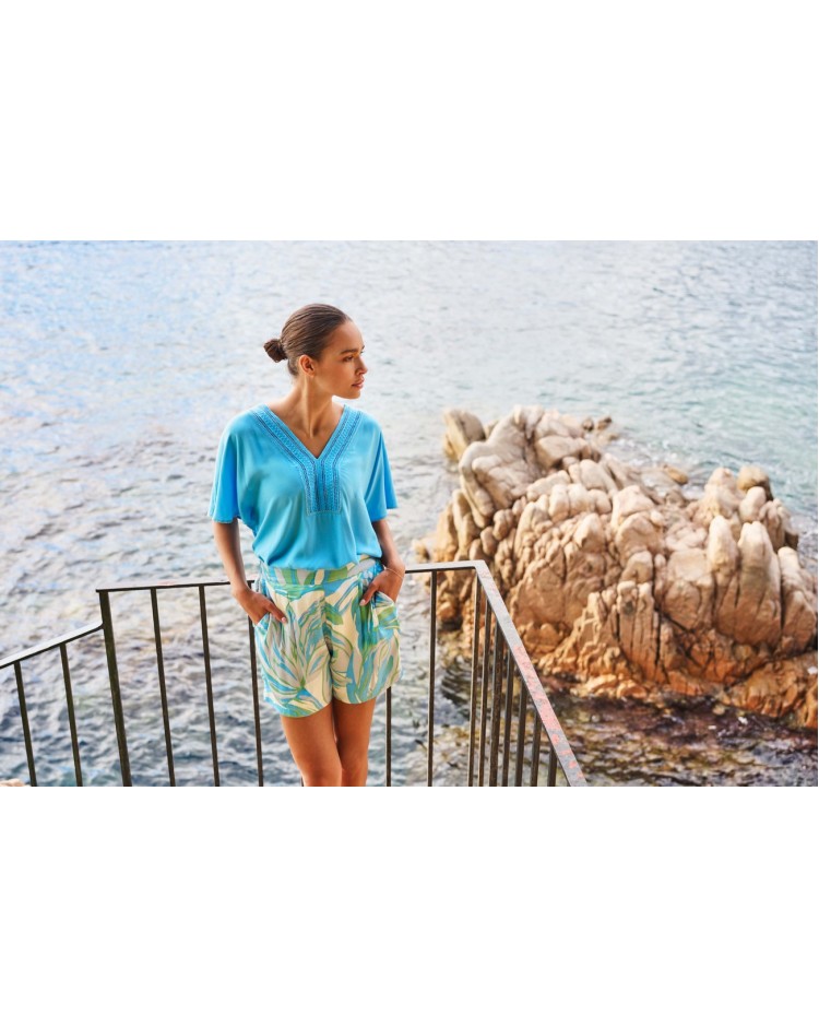 Μπλούζα V με κέντημα 100%RAYON HS25.14213