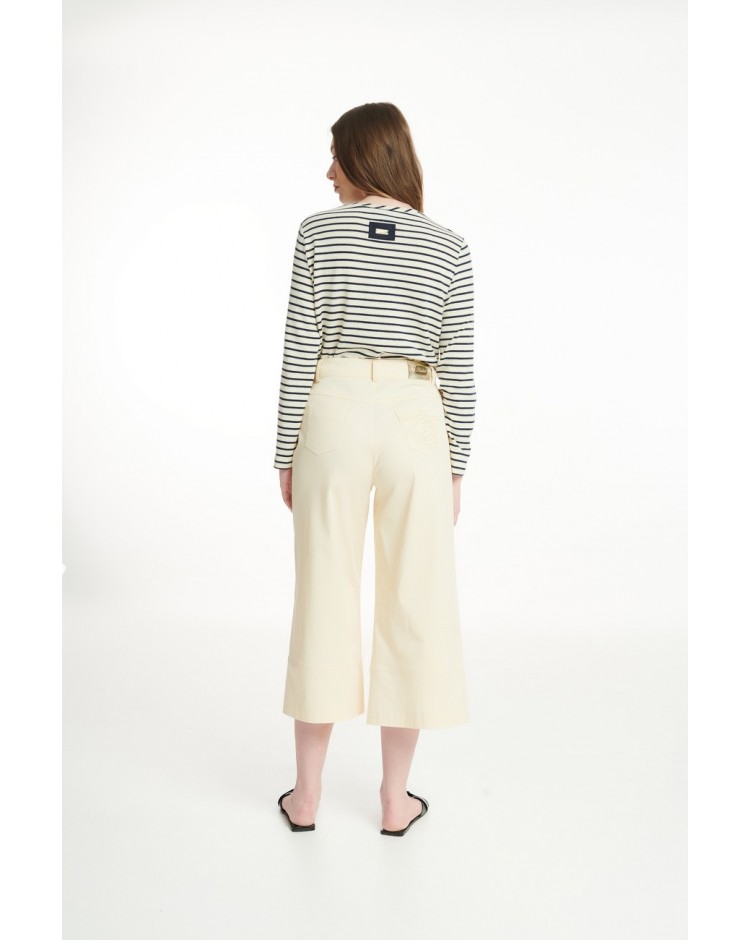 Παντελόνα cropped καπαρντίνα με κεντημένη τσέπη 98%COT-2%SP 24-273-00