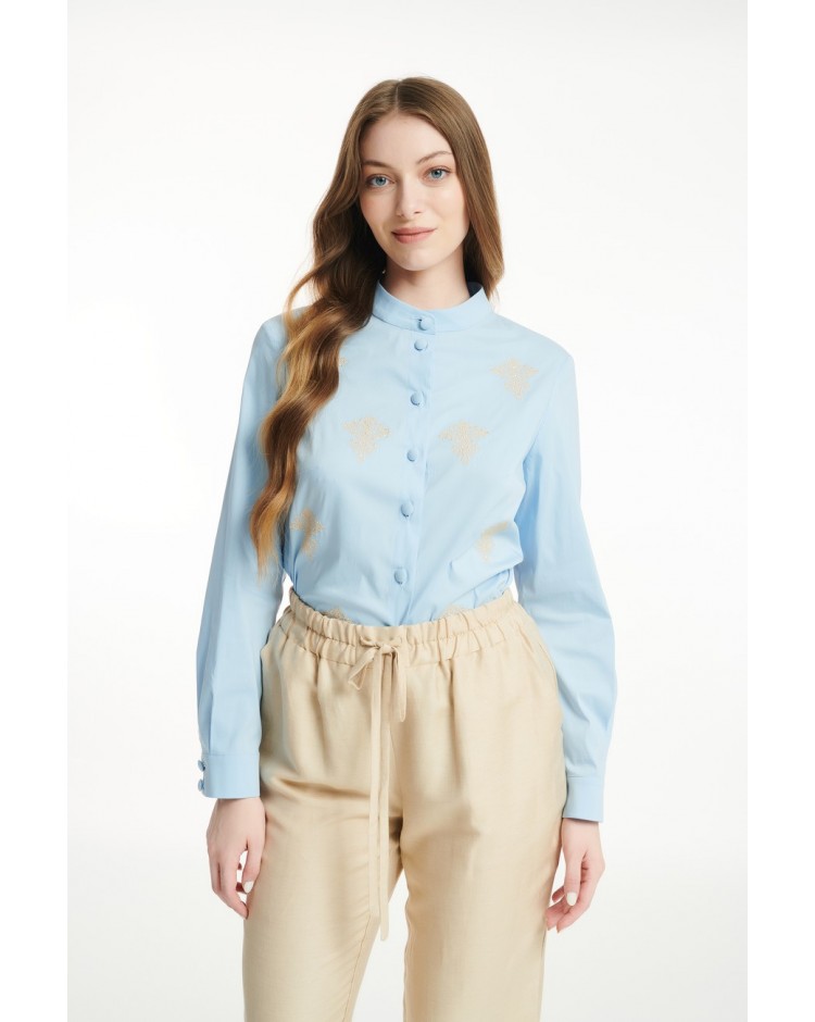 Πουκάμισο με μάο γιακά και χρυσά κεντήματα 79%COT-18%PA-3%SP 24-346-00